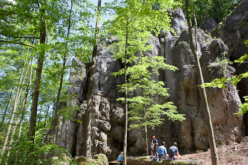 Die Betzensteiner Sportkletterwand hat auch Besuch. Nicht viel. Eigentlich hätten wir klettern können, aber die Wand liegt komplett im Wald und es ist noch nicht so warm, dass es nicht besser geht. Zum anderen kennen wir den Fels schon. So geht es zum Dreistaffelfels.
